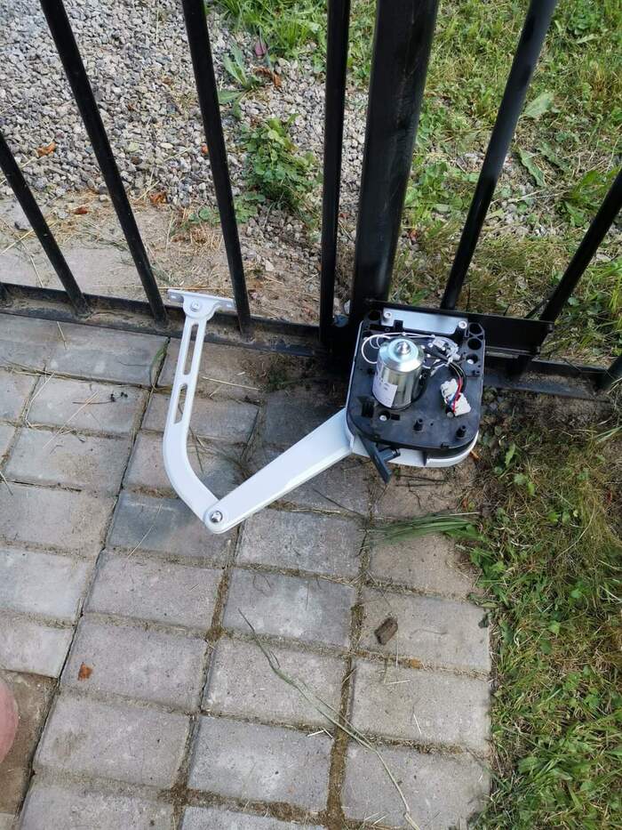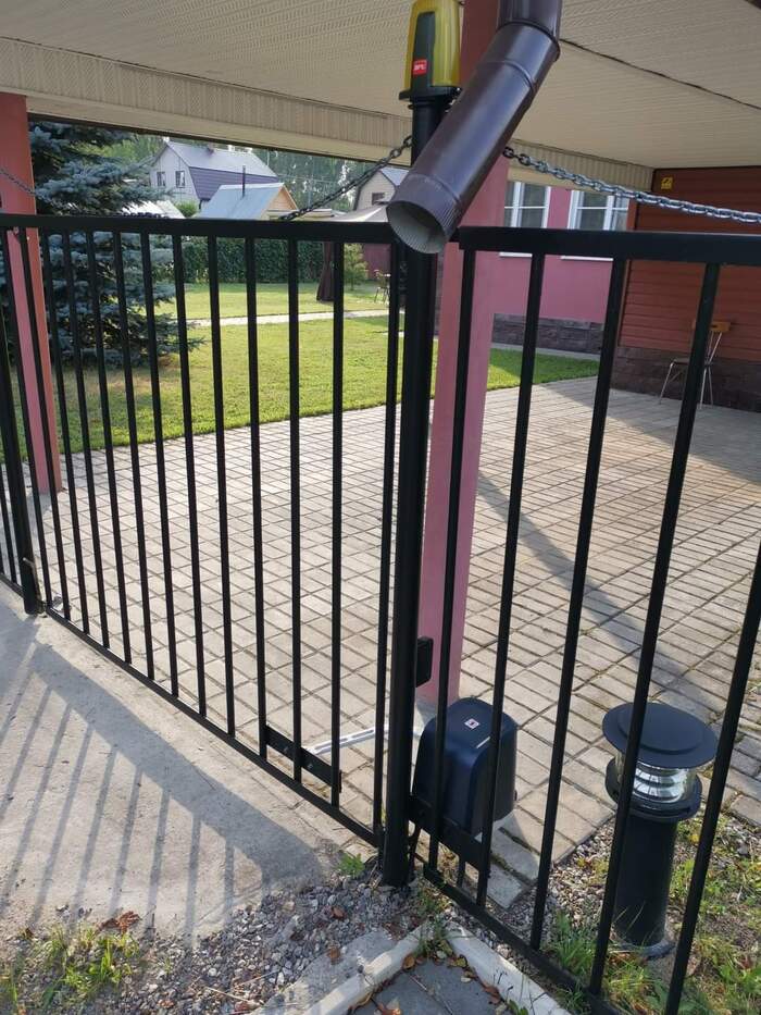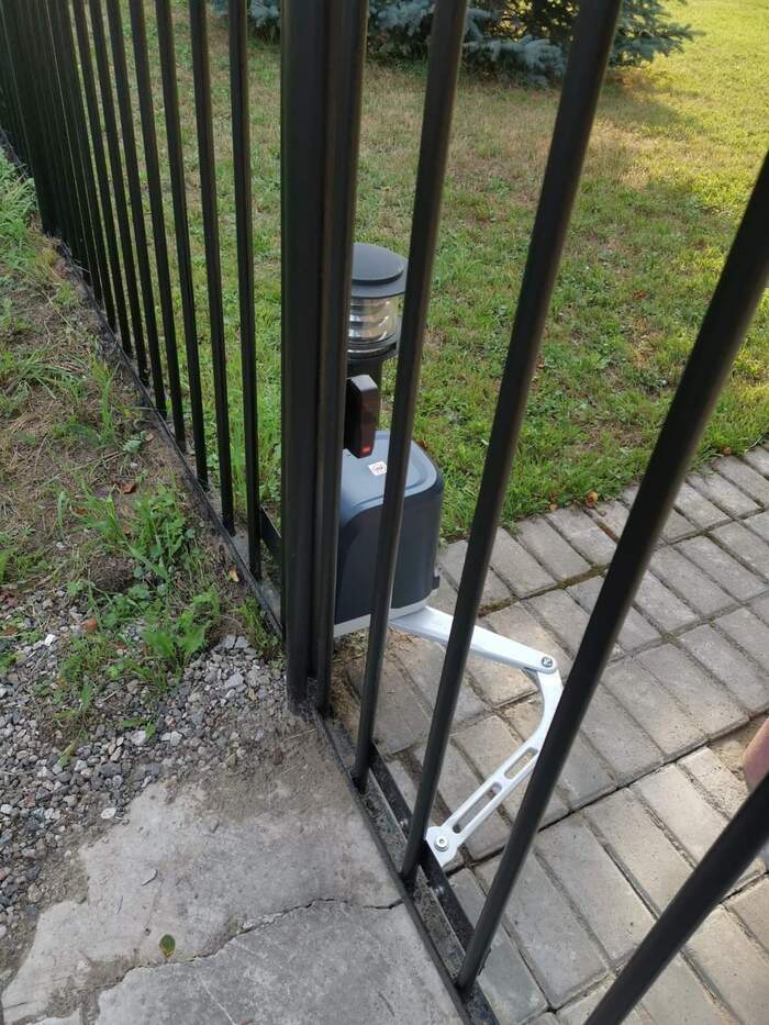 В общем, я очень доволен. Штука бесшумная и мощная - створка может быть массой до 200 кг, мои решетчатые створки для нее как лепестки ромашек. В закрытом положении также фиксируются хорошо, я прилично так тянул, уже начали подгибаться прутья забора, а у привода никаких признаков увядания, красота! Но сдуру, как говорится, можно и хер сломать, а уж при таком рычаге и подавно. Благо эти ворота выполняют не охранную, а декоративную функцию.