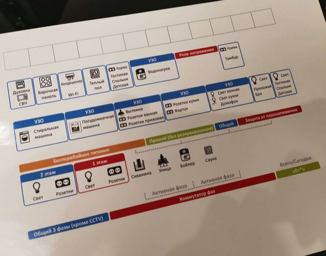 Ну и заодно, чтоб уж все красиво, обновил разметку для автоматов щитка (чтобы дважды не вставать сразу и для квартиры, верхний ряд). Я старомоден, поэтому все делал врукопашную, в CorelDraw, хотя вроде есть специализированные приложения.
