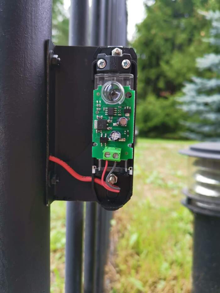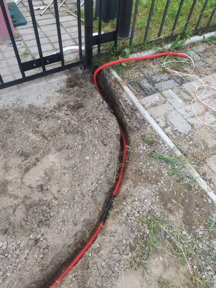 Земляные работы. Самая неприятная для меня часть работ, т.к. я МИРЭА заканчивал, а не траншеекопательный. Но назвался груздем...Копаем траншею между приводами (силовой провод и слаботочка для оптопары), плюс подаем стандартные однофазные 220 на левый привод, силовой вывод из дома был уложен загодя. Вся проводка, что не в земле, внутри стоек забора, вытягивание пучка через 6 мм дырку в столбе в этом случае отдельный квест, кто знает. Площадки под оптопары подбирались с таким расчетом, чтобы при закрытии створок даже инерционный удар не перекрывал световой пучок. Датчики регулируемые, световой пучок регулируется по горизонтальной и вертикальной оси (используется ассиметричная сферическая линза)