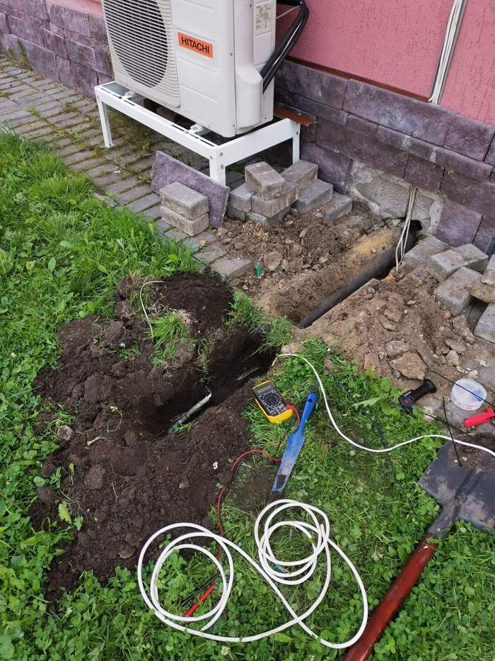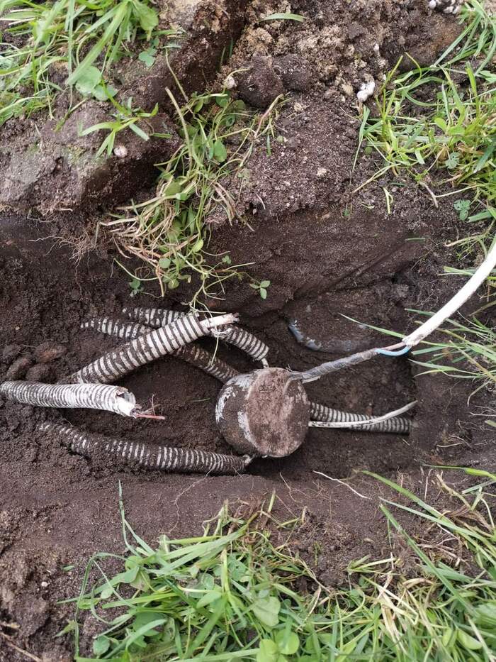 Начинаем настройку - подаем питание и...не работает. Нет 220(( Иду по проводу из дома, ищу обрыв...Обрыв устроили рабочие, которые переустраивали санузел - они просто перерубили вводы распаечной коробки, закопанной на глубине 30 см (копали, видимо, ввод к септику). Перерубили и закопали, уроды. Все переделал, снова загидроизолировал (внутри коробки), да будет свет!