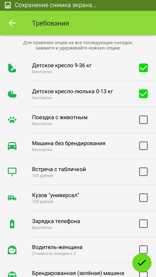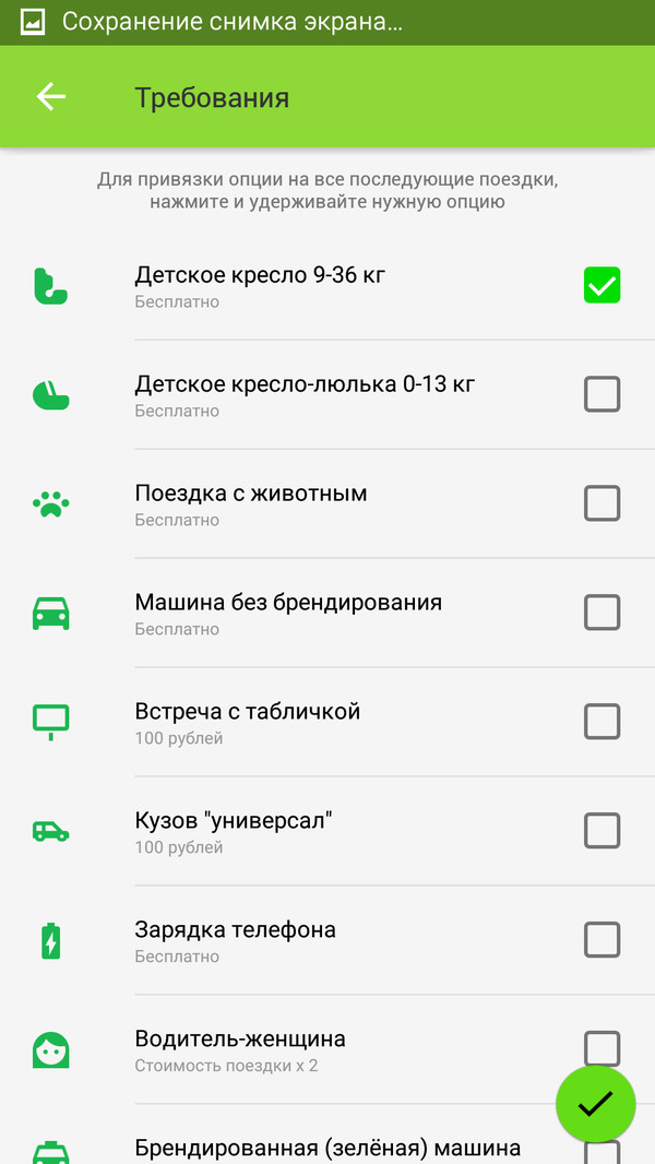Выбрал "детское кресло 9-36 кг" с пометкой бесплатно