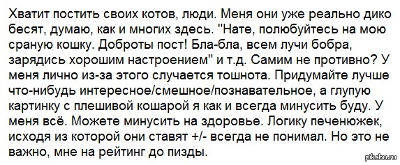 1 radiohead930 10 лет назад Обращение к любителям постить своих котов Кот Обращение к Пикабу Домашние животные