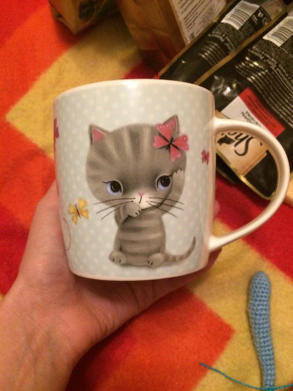 Трясущимися руками раскрывала я эти кулечки, а там чего только не было)) Милая кружка:
