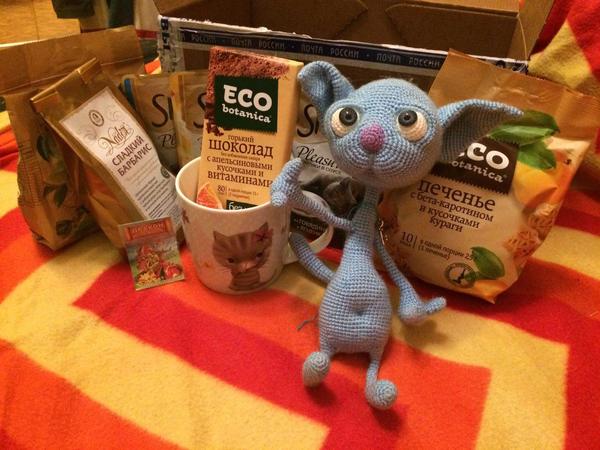 А еще подарок для моей котейки (она обожает Шебу), маленький дракончик в кошелек, чаек с барбарисом и много вкусняшек)