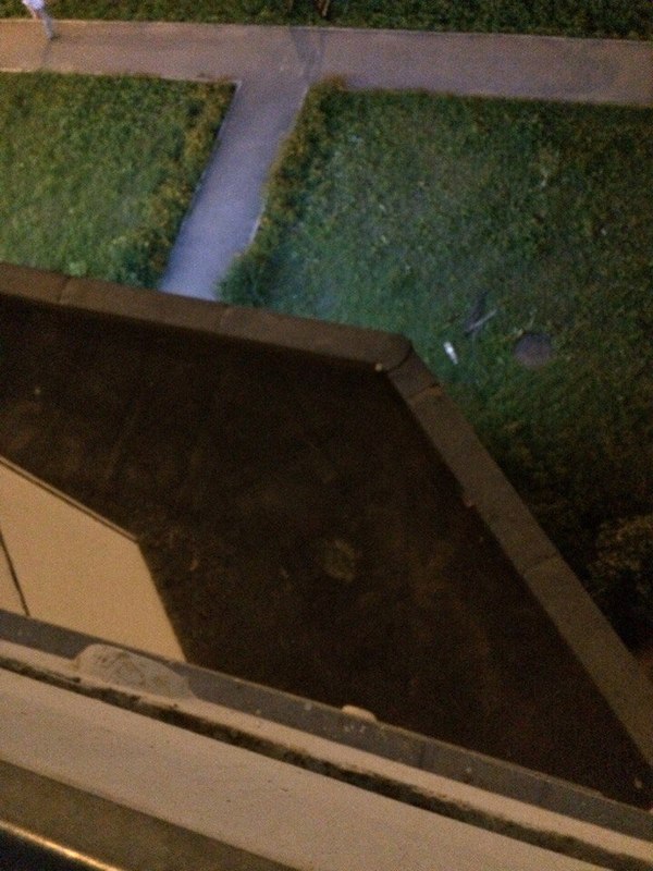Проанализировав ситуацию, я понял, что доступ на этот козырёк есть через окно второго этажа. Окно квартиры, в котором кто-то живёт.