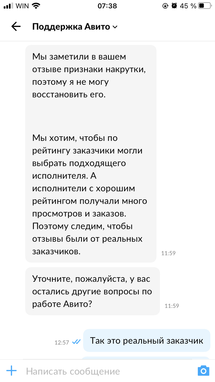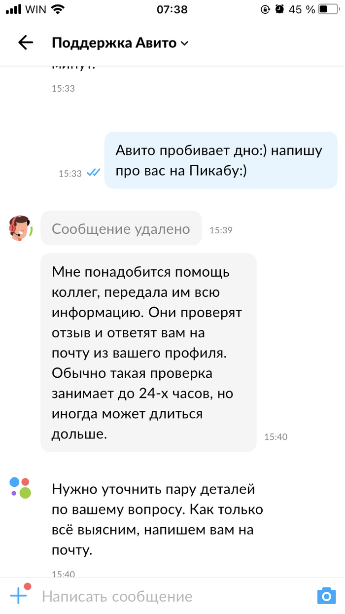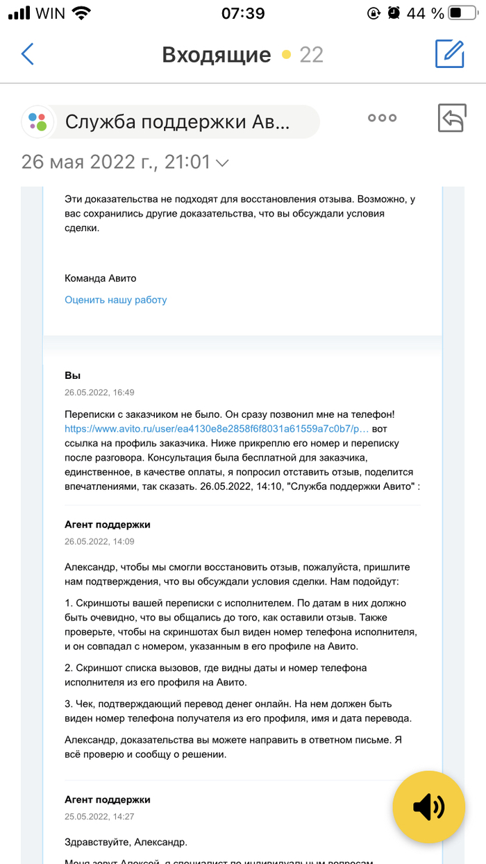 Тут часто замечаю что все хают авито. Пришёл и мой час. Размещено у меня на авито объявление, по оказанию услуги выхода на маркетплейсы. Аккаунт уже старый, отзывы есть но не по этому объявлению. Позвонил мне человек, не написал предварительно в сообщения, а сразу позвонил. Вопрос был не сложным, договорились что я помогу ему за отзыв. Короч отзыв он оставить так и не смог, авито блокировало и продолжает блокировать отзыв как накрученный. После того, как я сказал им что напишу про них на Пикабу, они зашевелились и написали мне на почту, попросили доказательства сделки. В качестве доказательств, они предлагают скинуть скрин переписки с клиентом (хотя ее нет, был сразу звонок), скрин перевода денег от клиента(его ведь тоже не было). Я предоставил скрин номера человека который звонил, его профиль, переписку после того как он не смог оставить отзыв, но этого нахватало.В общем как-то так. Ниже прикреплю пару скринов от техподдержки. Особенно улыбнул ответ про исполнителей с хорошим рейтингом:)