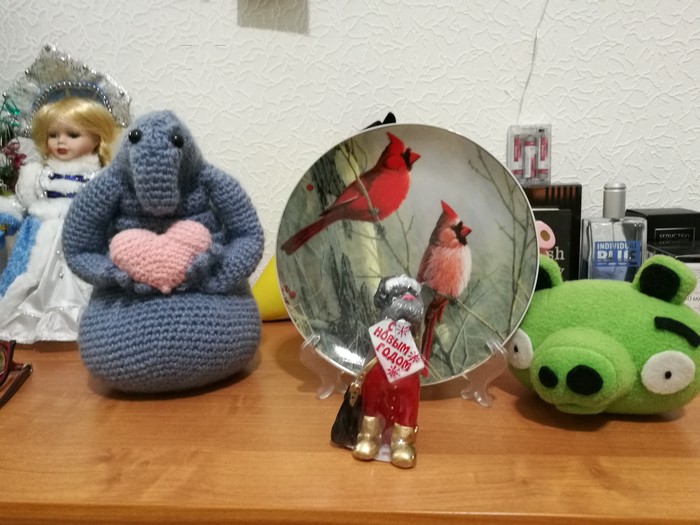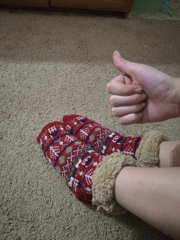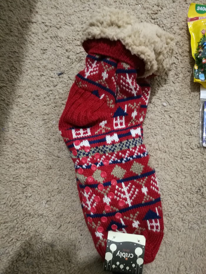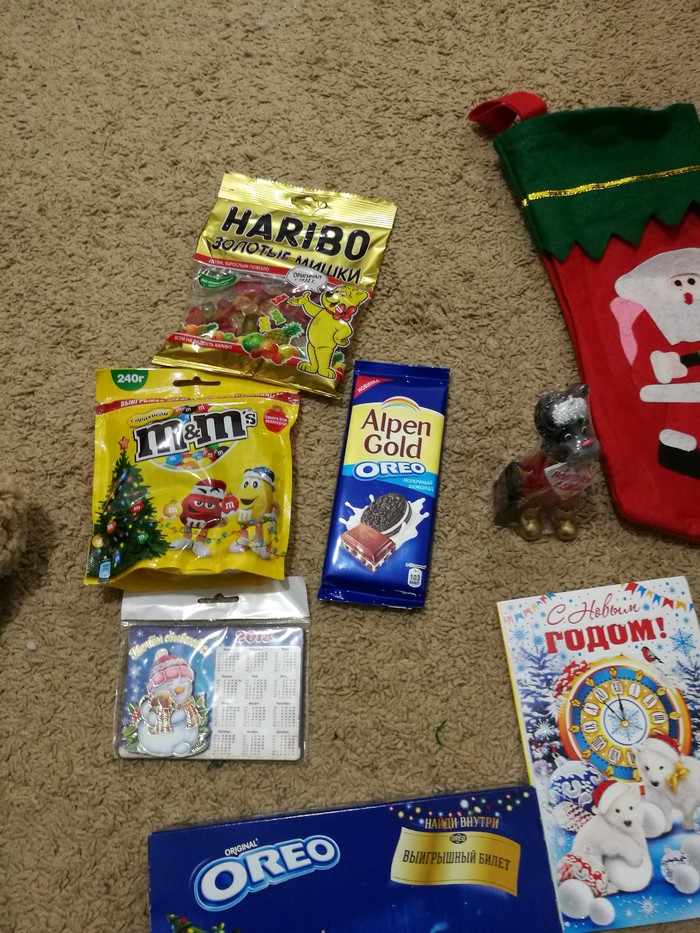 Вкусняшки заняли свое место в миске, свечка на полке, носочки на жене(восторгу не было предела, она любит такие штуки:) )