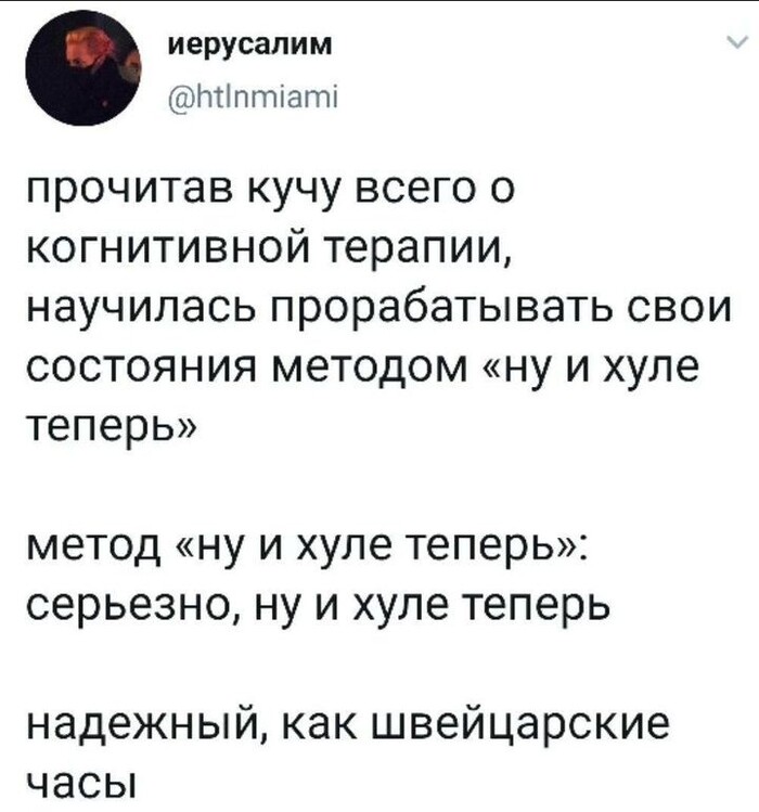3330 razbudimenya 2 года назад Twitter Надёжный метод1 Показать полностью 1 X (Twitter) Скриншот Мат Метод Когнитивно-поведенческая терапия 18 12 1 1 Ещё 0