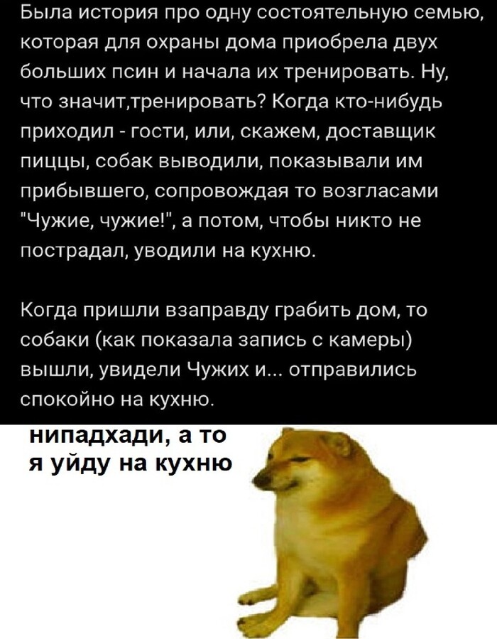 13 razbudimenya 2 года назад Чужие Показать полностью 1 Скриншот Собака Домашние животные Тренировка Охрана Картинка с текстом 1 Ещё 0