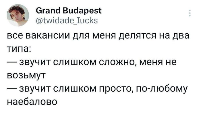 2732 razbudimenya 2 года назад Twitter Два типа вакансий X (Twitter) Скриншот Работа Вакансии Картинка с текстом Мат 13 3 1 Ещё 0