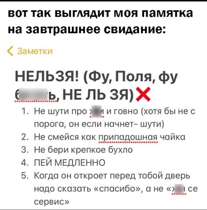 razbudimenya 2 года назад Памятка Показать полностью 1 Девушки Парни Свидание Заметки Поведение Картинка с текстом Мат 1 Ещё 0