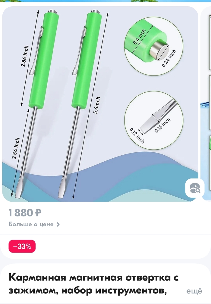 Понадобилась мне новая отвертка, так как, кроме ключей на 24, 27, 30, 32 и шестигранников еще каждый месяц нужно переводить календари на формах, и была у меня прекрасная отверточка, маленькая, на клипсе и до кучи с магнитом на ручке, очень удобная, дал я её коллеге на 10 минут, и этот дебил её проебал благополучно... Может и спиздил, но суть в том что её больше нет. Перерыл весь интернет что-то похожее есть на озоне, и то ищется только через Яндекс поиск по картинкам.