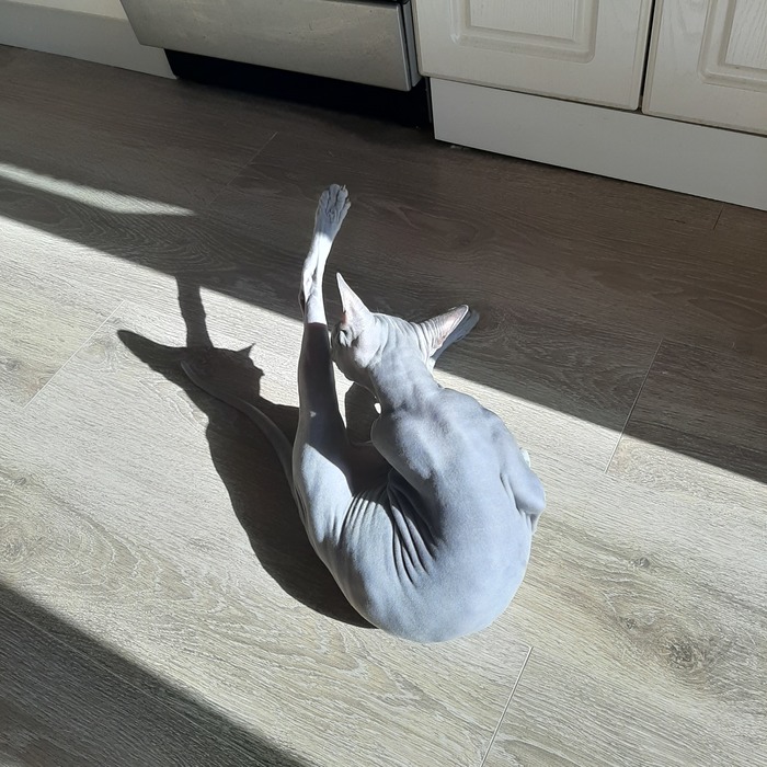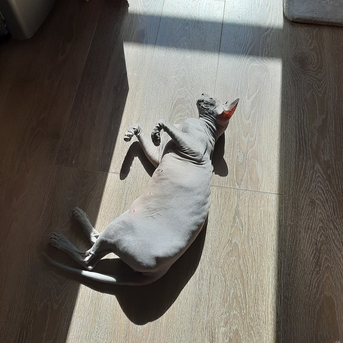 Надо сказать, что Роберт вот совсем не любит незнакомцев. Любой гость в нашей квартире в какой-то момент может быть атакован лысой торпедой. И друзьям мы уже бросили доказывать, что без посторонних кот любвеобильный и послушный. Плановые походы к ветеринару тоже заканчиваются рычанием и распусканием лап.