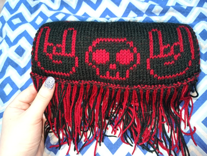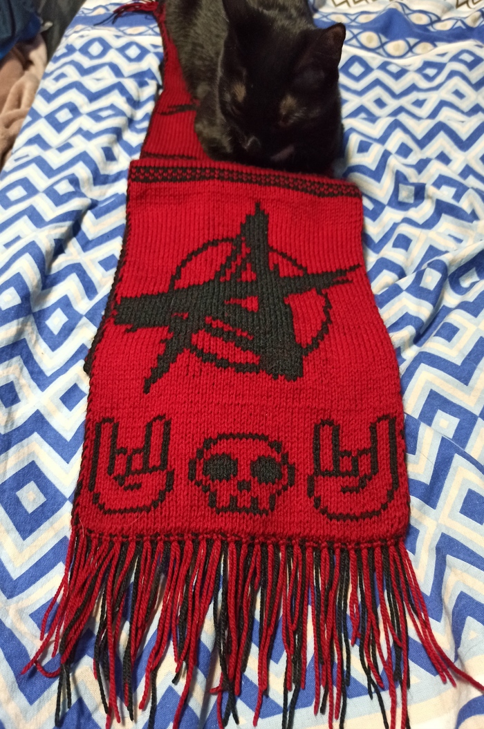 Вот ещё один мой шарфик готов! Вязался в подарок другу на юбилей:) друг фанат группы "Алиса", поэтому выбор пал на лого:)
