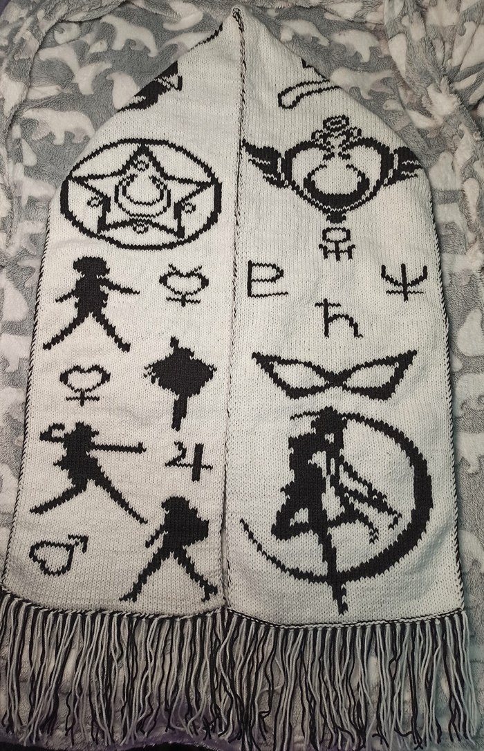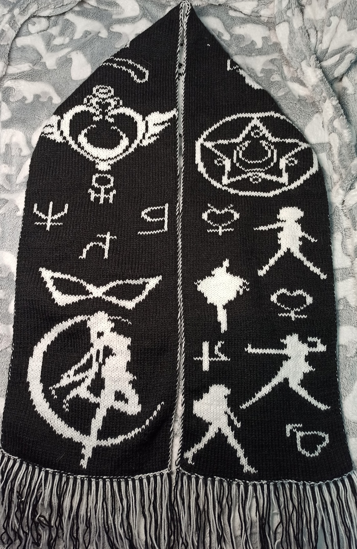 И выбор пал на шарфы с героями аниме:) цвет они обе выбрали чб (я так понимаю, это у них щас модно), схему выбрала я, девчонки утвердили:)