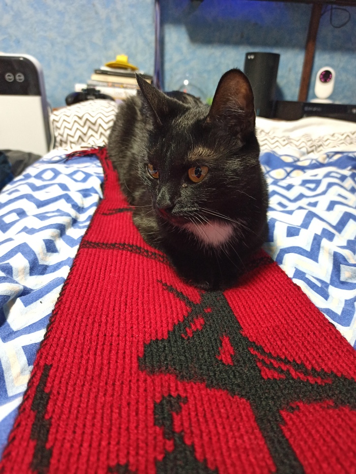 Техника двухсторонний жаккард, как вы уже поняли, надпись читается с двух сторон (раньше не умела и сначала не получалось). Нижнюю часть шарфа взяла из схемы одной из пикабущниц - мастериц, если найду, добавлю в пост:)
