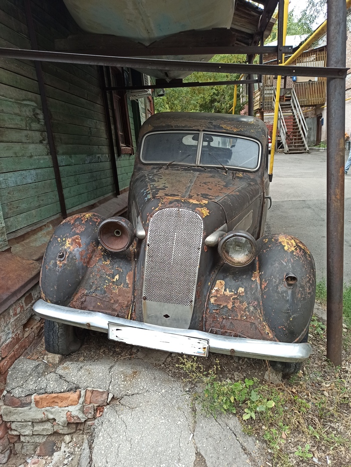 Эта милая пара, мама и ребенок были встречены под старым ретроавтомобилем)