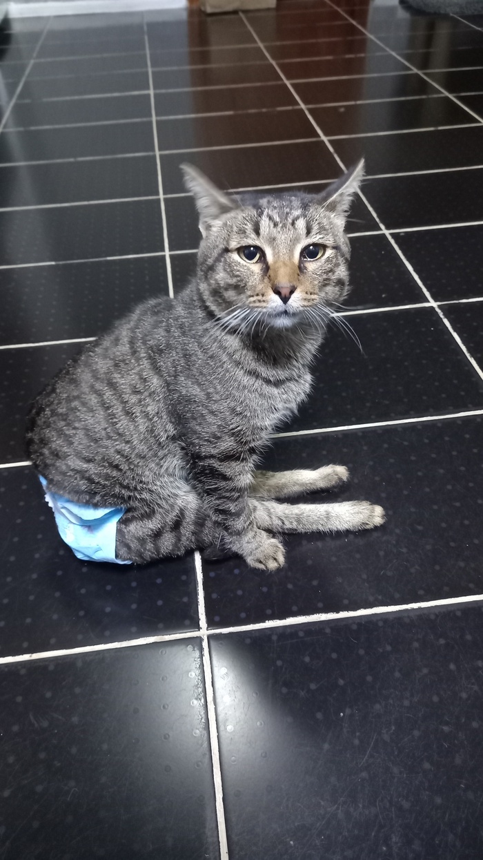 А это Магнат, он очень классный котик, но он сейчас болеет, очень сильно, у него пищевая аллергия, ему можно только гидролизированный белок... Магнат всегда встречал всех гостей приюта, но сейчас он в стационаре