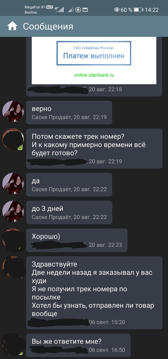 Мой сын решил купить худи, нашел Вконтакте группу, оплатил заказ и стал ждать. Прошел месяц ни привета ни ответа. На вопросы не отвечают.
