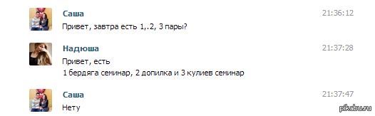 relhzy Ты сам творишь свою реальность 11 лет назад Староста показала емкую переписку с нечасто посещающим нас одногруппником [моё] Универ ВКонтакте Переписка Уверенность Пары