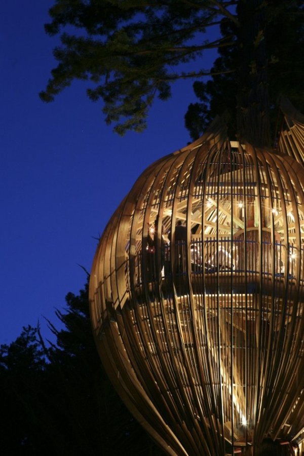 Деревянный ресторан по проекту Peter Eising и Lucy Gauntlett из архитектурного бюро Pacific Environments Architects установлен на высоте 10 метров над землей и уже принимает посетителей. Ссылка на сайт ресторана http://www.redwoodstreehouse.co.nz/
