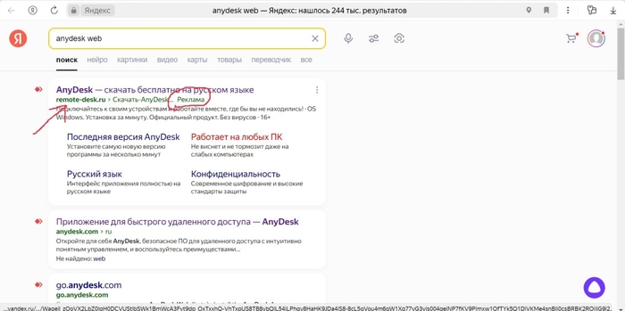 Решил я сегодня загуглить AnyDesk и вижу что Яндекс мне его рекламирует