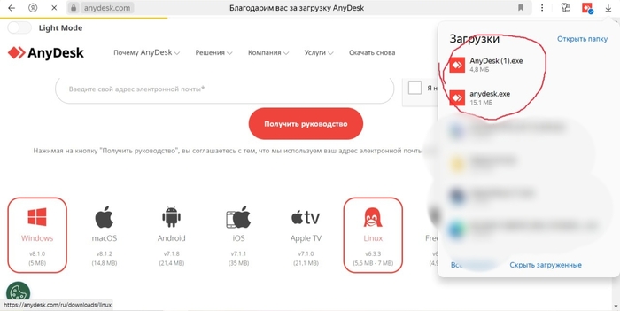 И видим уже несостыковку в виде разного размера установочного файла. (AnyDesk (1).exe с официального сайта)