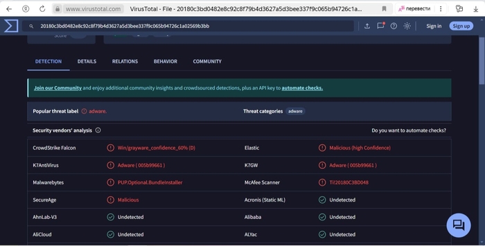 Теперь мы точно убеждены что Яндекс впарил нам фишинговые сайт с вирусным файлом на нем.