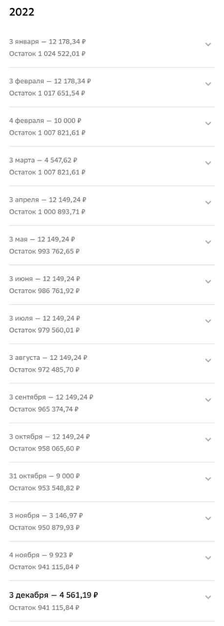 Периодически я докидывал для уменьшения ежемесячного платежа когда появлялись деньги. Но если посчитать всё, что я заплачу по новому графику. Получится, что я переплатил почти 30 000.