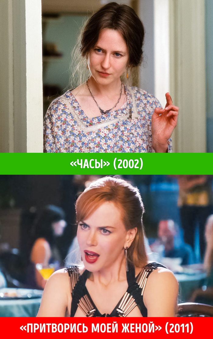 Кидман прочитала все письма, которые были опубликованы Вульф. Как потом признавалась актриса, это очень помогло ей вжиться в образ и понять свою героиню в фильме "Часы". Также Николь пришлось учиться писать правой рукой, ведь сама она левша. Худшей же ролью Кидман в кино считается «Притворись моей женой». Звездами этого фильма, конечно, были Дженнифер Энистон и Адам Сэндлер, но от зрителей не укрылось и присутствие Николь Кидман, которое все сочли отвратительным.