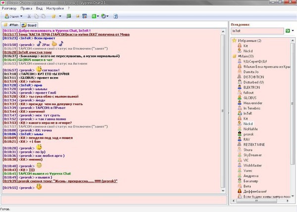 В то время шла активная "внутрисетевая" жизнь. И помогал в этом vypress chat. Во многих сетях любили использовать именно его. Тут люди промывали друг другу кости, знакомились, договаривались "погулять", о том чтобы во что-то сыграть и так далее, короче говоря небольшая социальная сеть микрорайона =). Так же было понятие "сетевые сходки" когда народ из локальной сети договаривался собраться, попить пивка и решить какие то общие проблемы, а так же вспомнить "добрым словом" раздающего платный интернет через траффик инспектор.