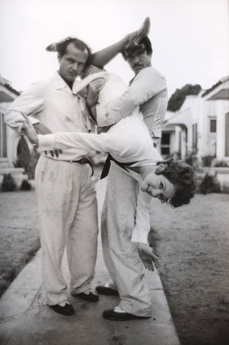 Джек Николсон, Уоррен Битти и Стокард Чэннинг между ними. 1975 год, съемки фильма "Состояние"