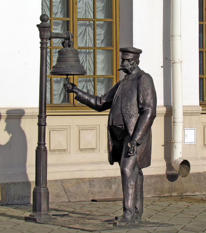 Рядом еще стоит дядечка в цилиндре.По всей видимости, они относятся к магазину "Витражи", около которого и находятся.
