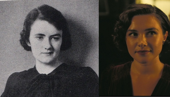 Джин Тэтлок ( актриса Фло́ренс Пью ака Дэни из Солнцестояния, Эми Марч из Маленьких женщин) — американский психиатр и врач, член Коммунистической партии США, журналистка, писавшая для партийного издания Western Worker. Из-за отношений с Оппенгеймером и членства Тэтлок в Коммунистической партии она находилась под наблюдением ФБР, её телефон прослушивался. Тэтлок страдала клинической депрессией и покончила с собой в 1944 году.