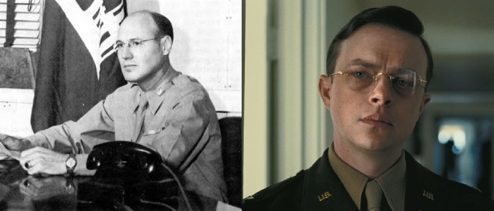 Лесли Гровс (актер Мэтт Деймон ака Уилл Хантинг, Джейсон Борн, Уотни из Марсианина и доктор Манн из Интерстеллара) — генерал-лейтенант армии США, контролировал строительство здания Пентагона, в 1942—1947 — военный руководитель программы по созданию ядерного оружия (Манхэттенский проект)