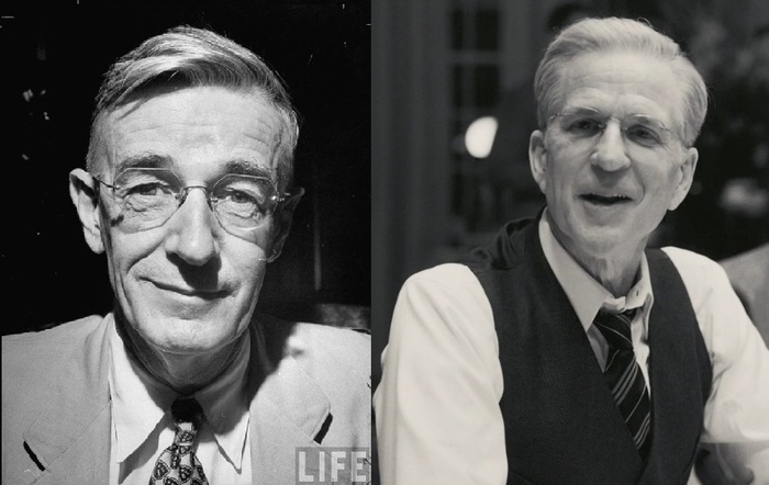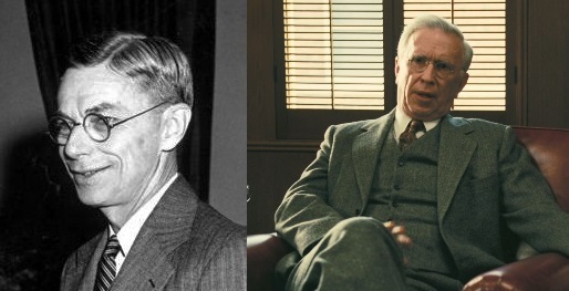 Вэнивар Буш (актер Мэттью Модайн, играл в Птахе, Цельнометаллической оболочке, Очень странных делах) — американский ученый, инженер, разработчик аналоговых компьютеров, методолог и организатор научных исследований и научного сообщества. Советник по науке при президенте Рузвельте. В 1940 году Вэнивар Буш был назначен председателем Национального исследовательского комитета по вопросам обороны США (Буш смог добиться аудиенции у президента 12 июня 1940 года, на которую он взял единственный листок бумаги с описанием проекта. По истечении 15 минут Рузвельт одобрил предложение, написав на листке "OK — FDR"), а с 1941 по 1947 год возглавлял организацию преемника комитета — Управление научных исследований и разработок, занимавшегося координацией усилий научного сообщества в военных целях, в том числе и разработкой ядерного оружия (Манхэттенский проект).