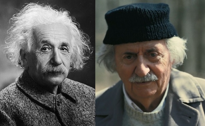 Альберт Эйнштейн (актер Том Конти) — американский, немецкий и швейцарский физик-теоретик и общественный деятель-гуманист, один из основателей современной теоретической физики. Лауреат Нобелевской премии по физике 1921 года. Его теория относительности изменила основания физики, заменив классическую механику и закон всемирного тяготения Ньютона. Он разработал несколько фундаментальных физических теорий: Специальная теория относительности (1905), Общая теория относительности (1907—1916), Квантовая теория фотоэффекта, Квантовая теория теплоёмкости, Квантовая статистика Бозе — Эйнштейна, Статистическая теория броуновского движения, заложившая основы теории флуктуаций, Теория индуцированного излучения, Теория рассеяния света на термодинамических флуктуациях в среде.