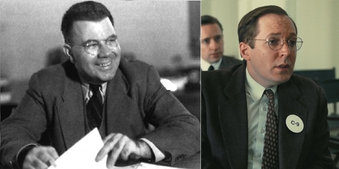 Дэвид Лоуренс Хилл (актер Рами Малек из Мистера Робота, Богемской рапсодии, Ночи в музее) — американский физик-ядерщик, работавший над Манхэттенским проектом во время Второй мировой войны и возглавлявший Федерацию американских учёных. Входил в группу учёных, построивших «Чикагскую поленицу-1» — первый в мире искусственный ядерный реактор. В 1945 году он был одним из 70 учёных, подписавших Петицию Силарда с просьбой к президенту Трумэну предупредить японцев перед применением атомной бомбы Наиболее известен своими показаниями против выдвижения Льюиса Штрауса на пост министра торговли США в 1959 году.