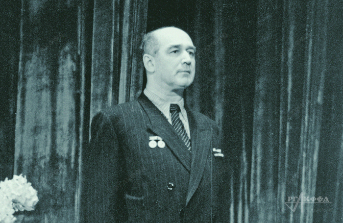 Народный артист СССР Н.Д. Мордвинов на праздновании своего 50-летнего юбилея в ЦДРИ / г. Москва. 16.04.1951 г. / Фотограф: Е.И. Явно / РГАКФФД. Арх.№ 0-386522