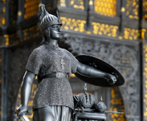 Скульптурная композиция высотой 97,5 см состоит из 15 деталей и изображает молодую женщину-воительницу с длинными волосами, облачённую в кольчугу и шлем и держащую в правой руке меч, в левой — щит, укрывающий прикрывает корону, скипетр и державу. На груди женщины — восьмиконечный крест.