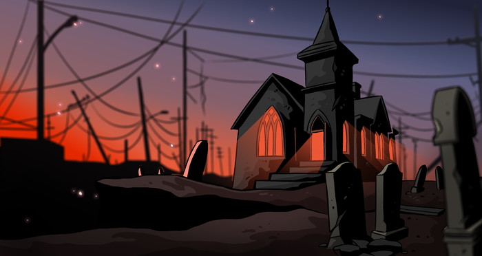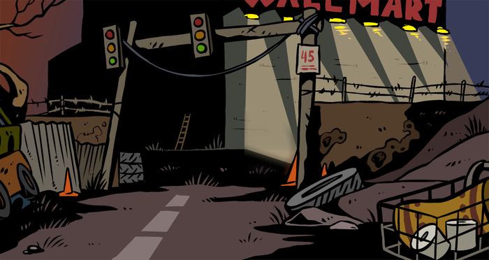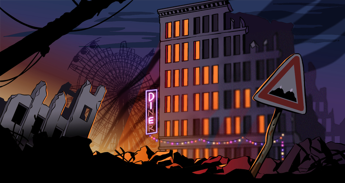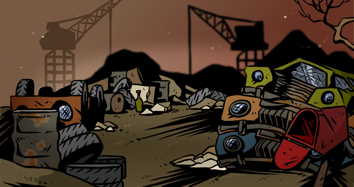 Поначалу хотел просто поставить картинку из главного меню. Там у нас хорошая, на мой взгляд, иконка: закат, девочка и робот напротив Пустошей — есть настроение, есть "путь". Это, кстати, пример удачной на мой взгляд иконки прложаения — не просто логотип или невразумительная картинка, а маленькая история, маленькая эмоция.