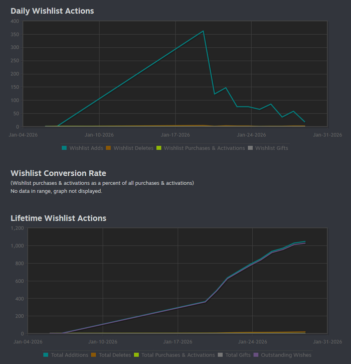 Но всё равно ощущение такое, что без серьёзного маркетинга 10к вишей (порог, после которого Steam начинает показывать игру в ожидаемых новинках) будут набираться очень долго.