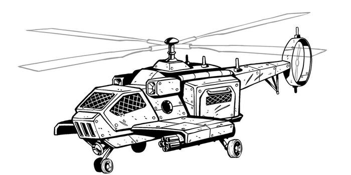 Это Верхолёт — летающий транспорт Патруля, могущественной военной организации, собранной из остатков армий, переживших Последнюю войну 30 лет назад. Именно на нём они прилетели, чтобы похитить отца Армиты и разрушить бункер, где она провела детство.