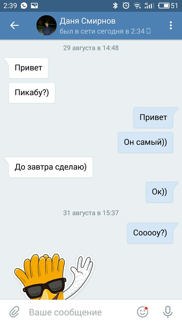 Короче, отправил меня учить(хотя бы читать) материал и прийти на экзамен после заочников. Еще с такими же дебилами, как я.