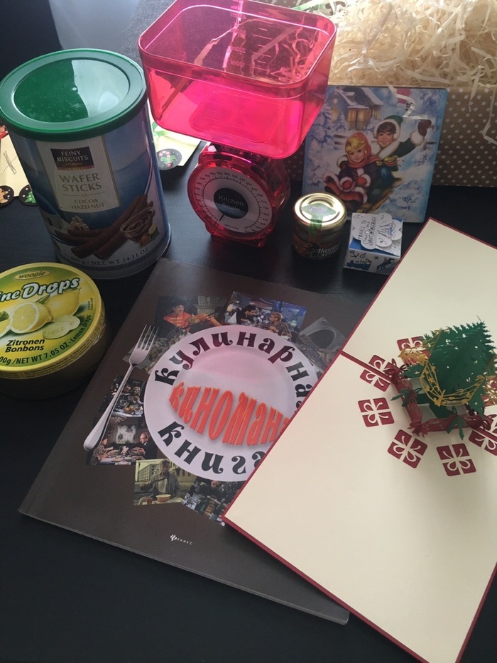 А дальше..а дальше еще интереснее! Моя снегурочка учла все мои интересы и пожелания. Тут тебе и сладости для радости, и душу киномана потешила. И про мою любовь к готовке не забыла :) Я была очень рада.