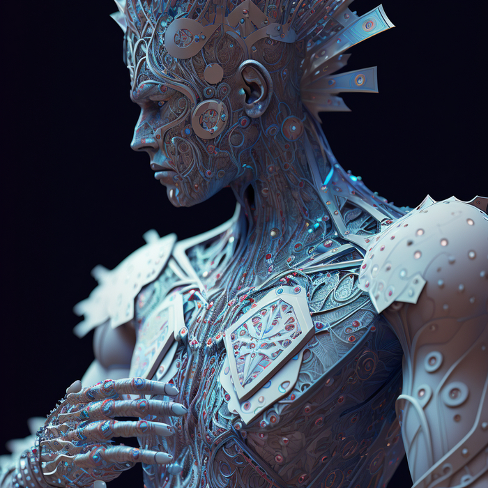 complex 3d render ultra detailed of a poker player. biomechanical cyborg, 150 mm lens, beautiful natural soft rim light, fine foliage lace, colorful details, art nouveau fashion embroidered, intricate details, mesh wire, mandelbrot fractal, anatomical, facial muscles, cable wires, microchip, badass, hyper realistic --v 4