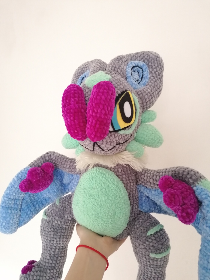 Оказался самым сложным персонажем из всех, что я вязала. Мне было нужно повторить его по эскизу, нарисованному самой заказчицей ( кстати, она замечательная художница!!!).