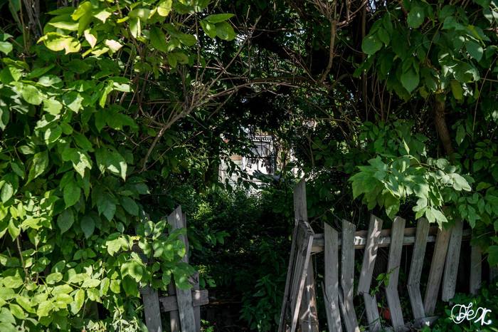 Я дошёл до дач. Есть в местных дачах некий шарм. Сразу за забором заросли заросли деревьев, и с улицы создаётся впечатление, будто каждый домик на участке - домик в лесу. Некоторые участки, возможно, заброшены.