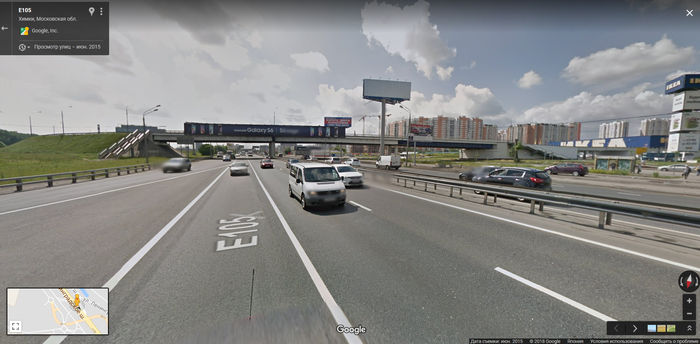 Проверяю в гугле - парк должен находиться с десяток километров в противоположной стороне. Хрен с парком, пойду в Мегу. Подошёл к монументу "Добро пожаловать в Химки" и... всё, пешеходных дорог нет. Гугл советует идти прям по шоссе, а движение оживлённое.