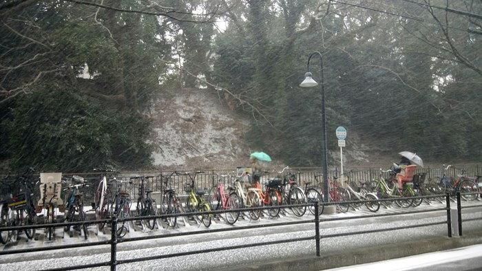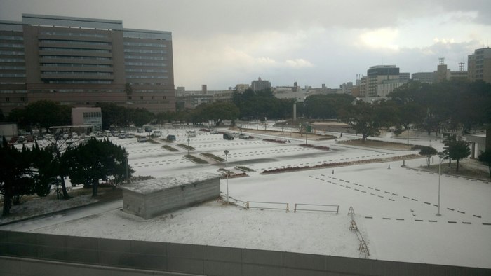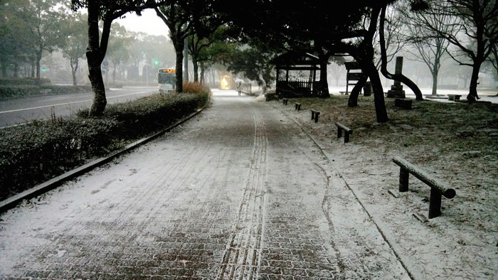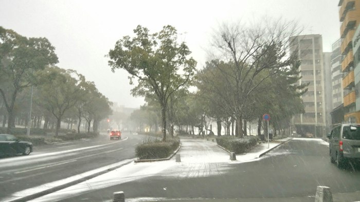 Пару дней назад похолодало до 0 градусов. Одни японцы говорят, что 0 градусов для Фукуоки - это нормально, другие говорят, что 0 это уже перебор, и обычно зимой температура опускается минимум до 2 градусов. Позавчера, когда ложился спать, в голове крутились строки "Буря мглою небо кроет, вихри снежные крутя." и утром в окне увидел снегопад. Снег в Фукуоке зимой бывает, но обычно он сразу тает, а тут при нулевой температуре не торопится.